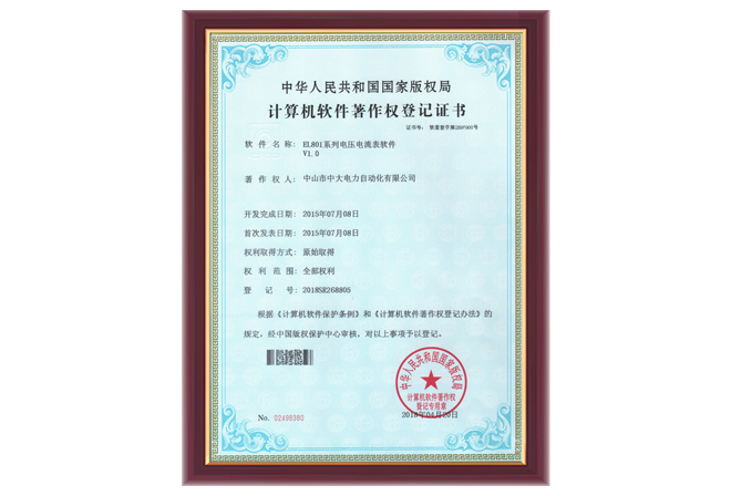 EL801系列軟件著作權登記證書